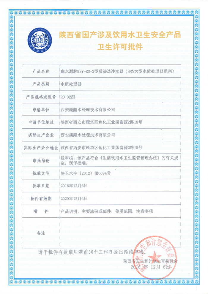 安全產(chǎn)品衛(wèi)生許可